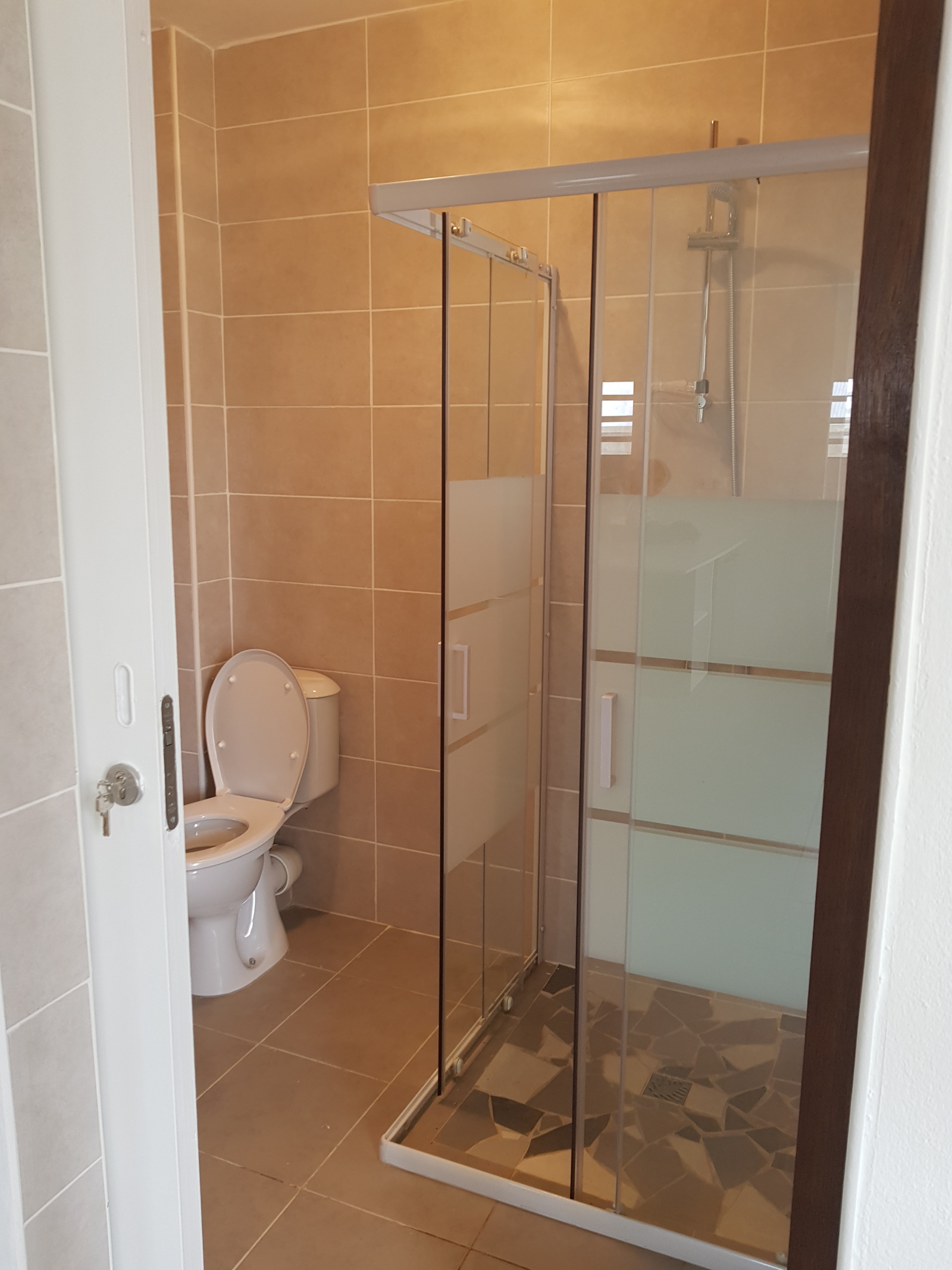 Au rez de chaussée: un porche, une cuisine aménagée et équipée (plage, four, lave vaisselle) avec ilot central, un debarras, une salle de bain ( wc, lavabo, douche), une terrasse.un jardin